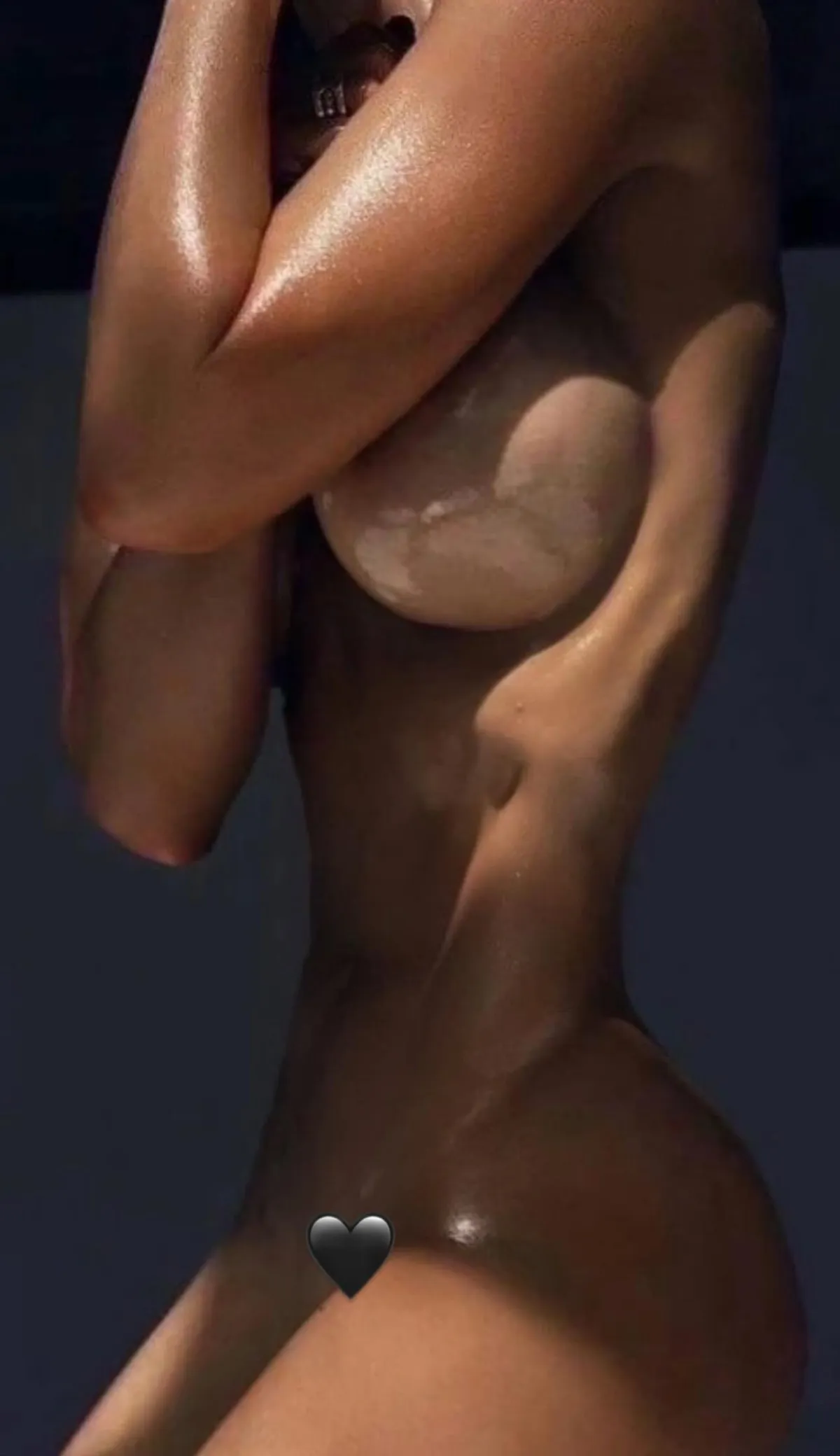На світлині спокуслива білявка позує мокрою та повністю оголеною, прикриваючи груди ліктями, а інтимні місця – емодзі.