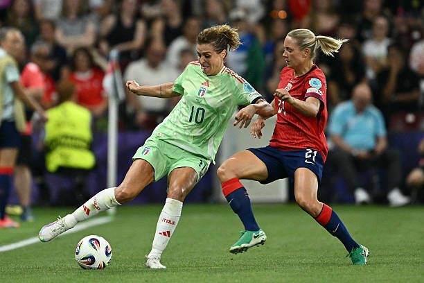Жіноча збірна Італії з футболу пробилася до півфіналу чемпіонату Європи 2025, обігравши у драматичному матчі Норвегію з рахунком 2:1.