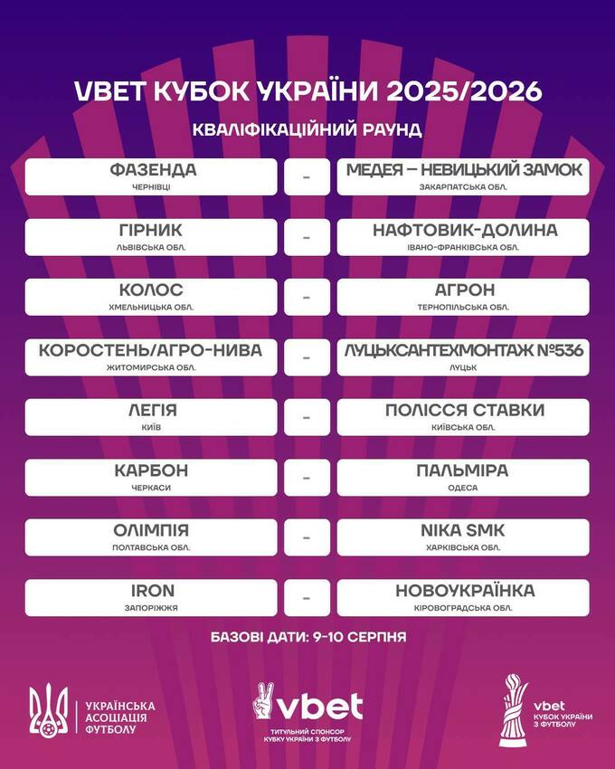 17 липня відбулося жеребкування кваліфікаційного раунду Кубка України сезону 2025/26.