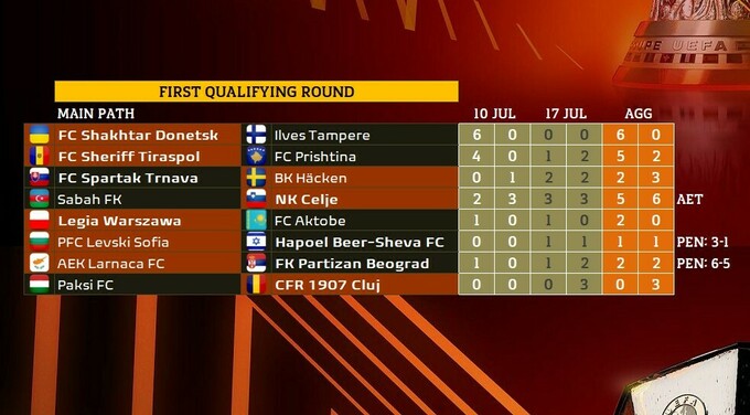 За їх підсумками визначено всі пари 2-го раунду кваліфікації (Q2) Ліги Європи.