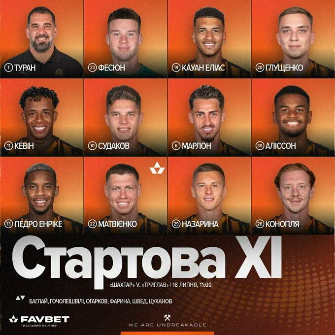 «Шахтар»: Фесюн (Баглай, 44) – Педріньйо Азеведо (Огарков, 44), Матвієнко, Назарина (Фарина, 44), Конопля (Гочолеішвілі, 44) – Судаков (Цуканов, 44), Марлон, Глущенко – Кевін, Еліас (Швед, 44), Аліссон.