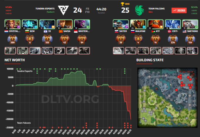 Tundra Esports в обох картах мали перевагу по золоту на початку, але невдало проводила бійки і віддавала гру своїм суперникам.