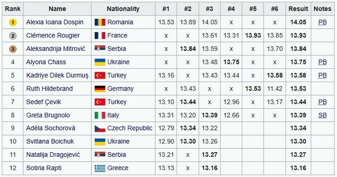 У секторі для потрійного стрибка 19-річна Альона Часс посіла четверте місце. Найвдалішою стала її четверта спроба – 13.75 м. Це новий персональний рекорд для українки.