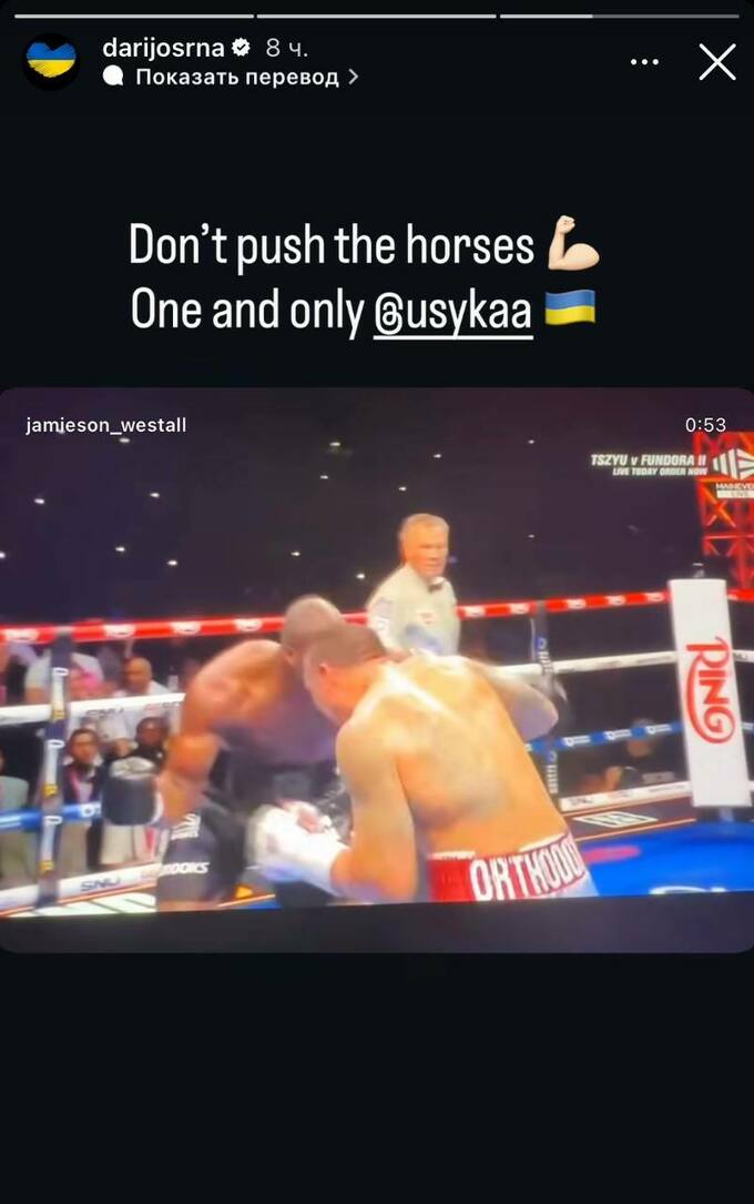 На перемогу українського чемпіона лаконічно відреагував легендарний захисник донецького «Шахтаря» Даріо Срна: «Чемпіон! Don't push the horses. One and only», – написав Даріо.