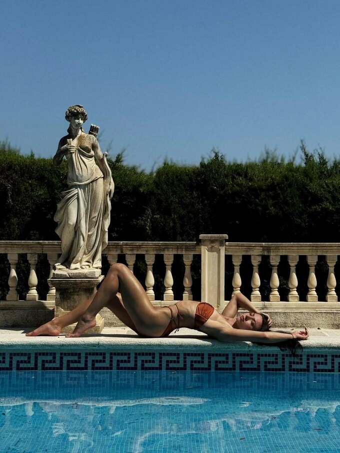 На знімках вона позує в купальнику, демонструючи спортивну форму та впевненість у собі.