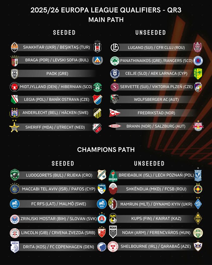 21 липня о 14:00 за київським часом у швейцарському Ньоні відбудеться жеребкування 3-го раунду кваліфікації Ліги Європи 2025/26.