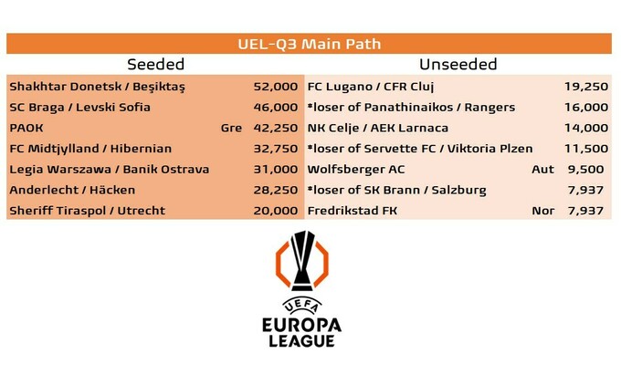 Поєдинки 3-го раунду кваліфікації Ліги Європи пройдуть 7 та 14 серпня. Переможці вийдуть до Q4 ЛЄ, а команди, що програють, перейдуть до Q4 Ліги конференцій.