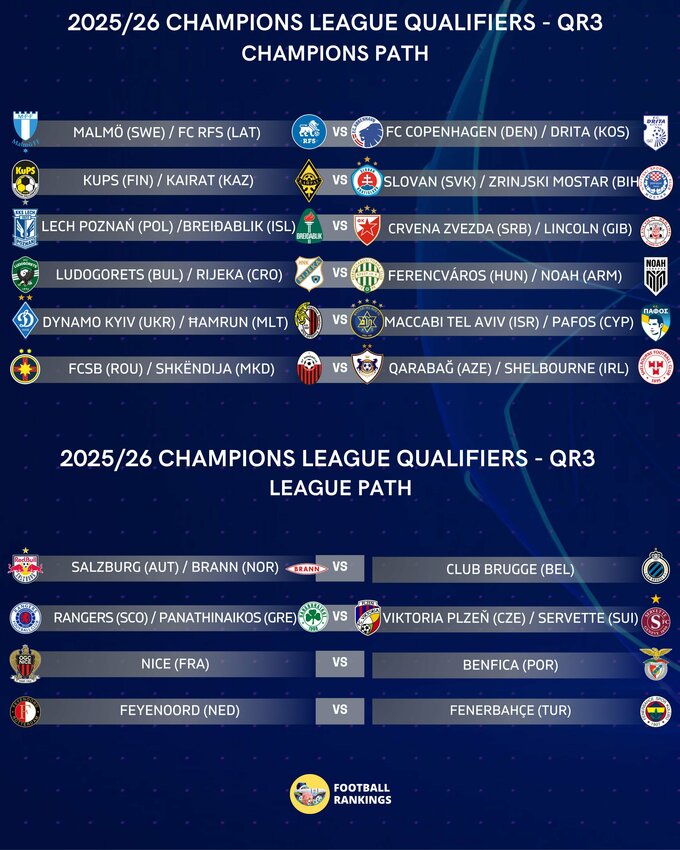 21 липня о 13:00 за київським часом у швейцарському Ньйоні відбулося жеребкування третього раунду кваліфікації Ліги чемпіонів сезону 2025/26.