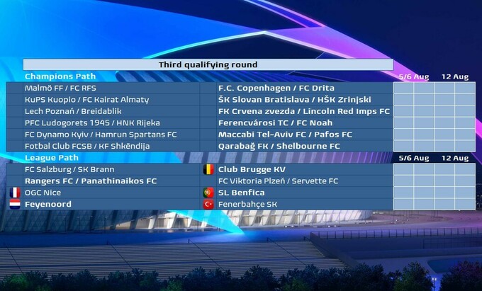 Поєдинки третього раунду кваліфікації Ліги чемпіонів відбудуться 5/6 та 12 серпня. Переможці вийдуть до Q4 ЛЧ, а команди, що програють, перейдуть до Q4 Ліги Європи.