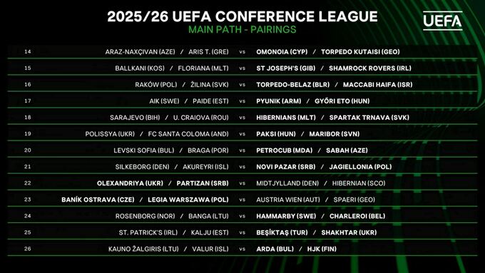 Суперник переможця пари Олександрія – Партизан у Q3 Ліги конференцій:
