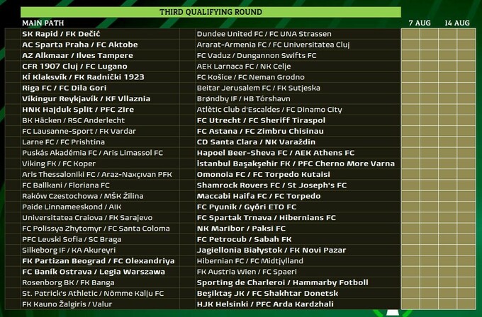 Поєдинки 3-го раунду кваліфікації Ліги конференцій відбудуться 7 та 14 серпня. Переможці вийдуть до Q4 ЛК, а команди, які програють, залишать єврокубки.