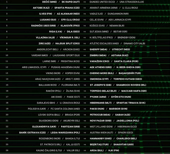 - Сент-Патрікс (Ірландія) / Нимме Калью (Естонія) – переможений: Бешикташ (Туреччина) / Шахтар (Україна)