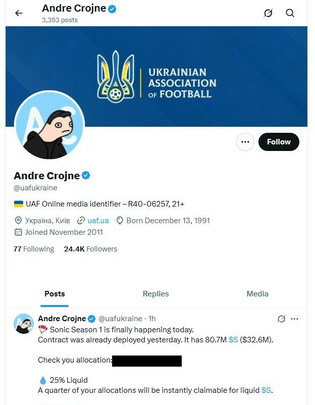 Акаунт Української асоціації футболу в соцмережі X (Twitter) зламано.
