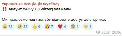 - «Акаунт УАФ у X (Twitter) зламали. Ми працюємо над тим, щоб відновити доступ до сторінки».