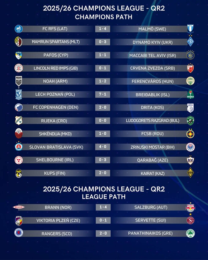 Увечері 23 липня відбулися перші матчі 2-го раунду кваліфікації Ліги чемпіонів 2025/26.