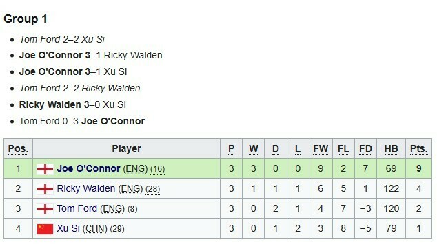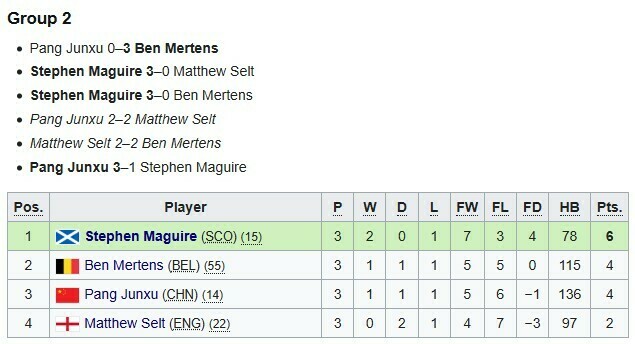 Раніше в груповій стадії Магвайр фінішував першим у квартеті з Беном Мертенсом, Пан Цзуньсю та Метью Селтом. А ось О'Коннор у своїй групі випередив Рікі Уолдена, Тома Форда та Сюй Сі.