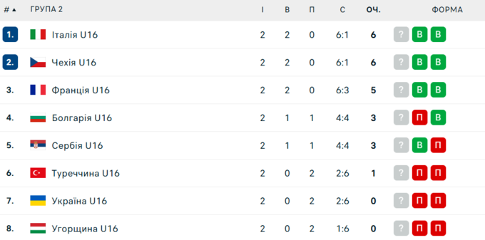 Таблиця 2-го туру чемпіонату Європи з волейболу U16. Де Україна?