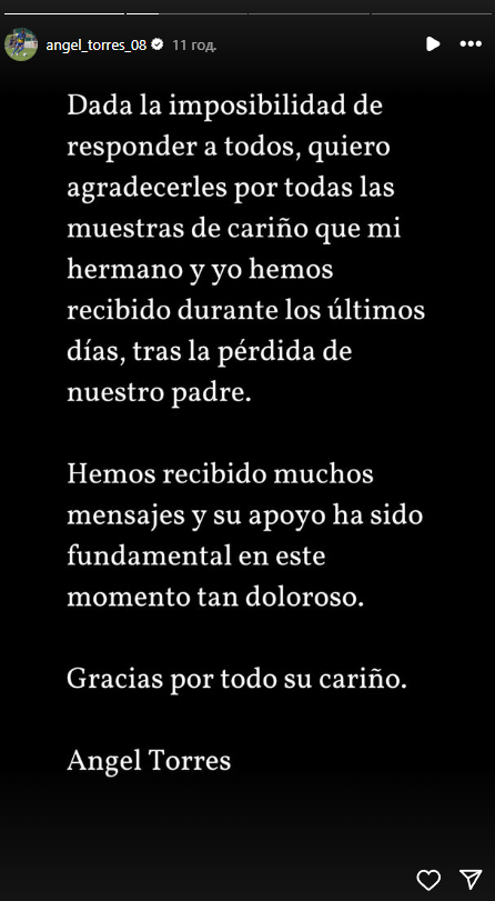 «З огляду на неможливість відповісти всім, хочу подякувати вам за всі прояви любові, які мій брат і я отримали за останні дні після втрати нашого батька.