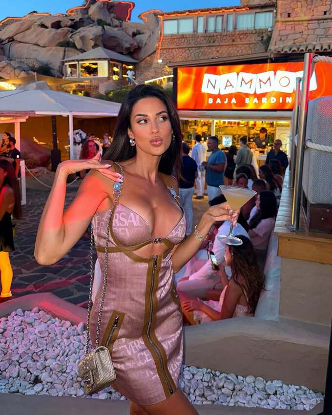 Її ефектний образ у рожевій сукні з глибоким декольте та вирізами на фоні заходу сонця на Сардинії викликав справжній ажіотаж у соцмережах.
