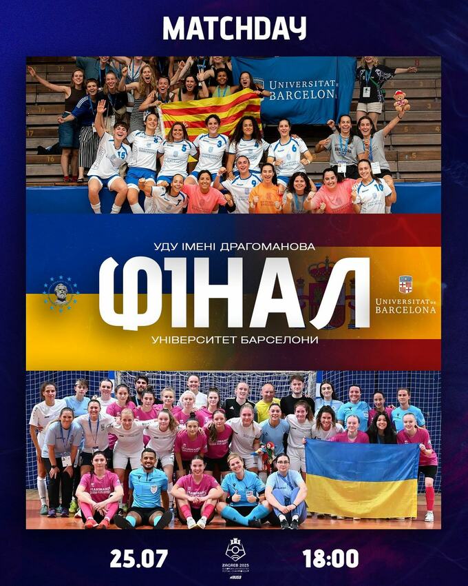 25 липня о 18:00 «драгоманівки» зіграють у фіналі проти Університету Барселони з Іспанії.