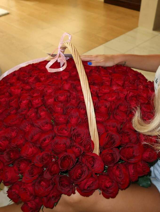 Анастасія Конопля, дружина захисника «Шахтаря» Юхима Коноплі, поділилася фото з величезною корзиною червоних троянд.