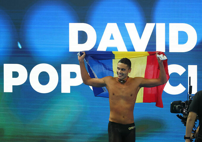 Чинний олімпійський чемпіон на 200-метрівці кролем Давід Поповіч з Румунії завдяки блискучій роботі на заключних 50 метрах виграв цю дистанцію й у Сінґапурі і здобув третє в кар’єрі золото чемпіонатів світу.