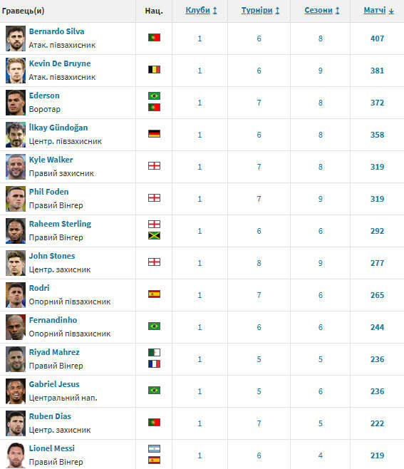 Не Мессі. Хто провів найбільше матчів під керівництвом Гвардіоли?
