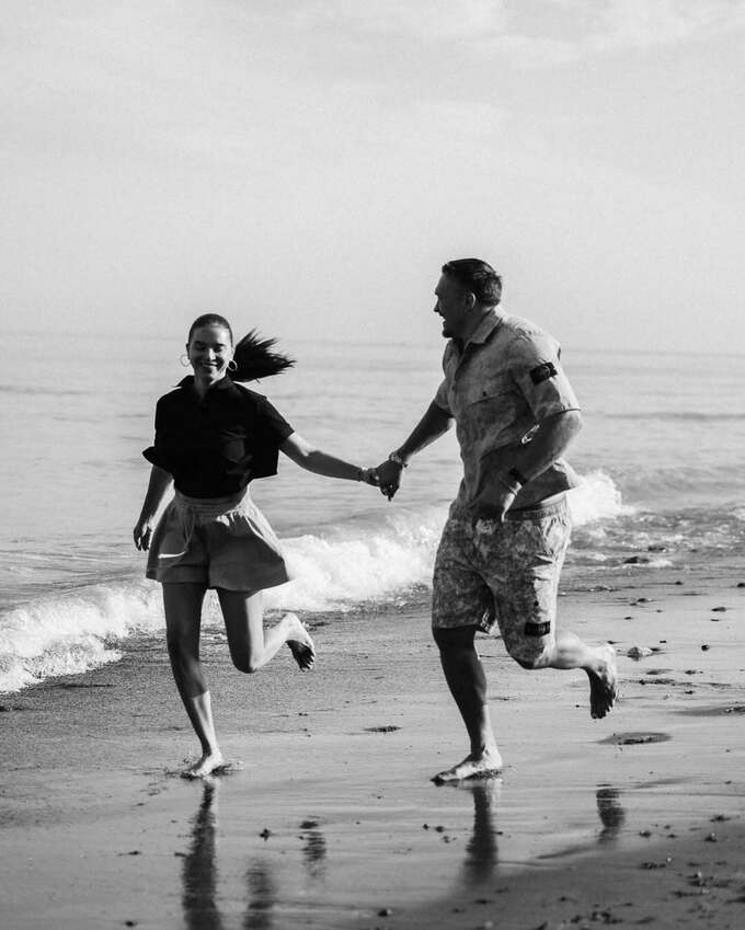 Дружина боксера Олександра Усика опублікувала чорно-білі кадри з прогулянки біля моря.