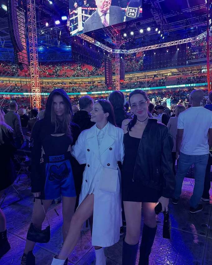 Сім'я Коноплянки приїхала на боксерське шоу Усик-Дюбуа, але не упустила шанс на дружню зустріч. У мережі з'явилося фото: усміхнені пари, два собаки і тепла атмосфера.