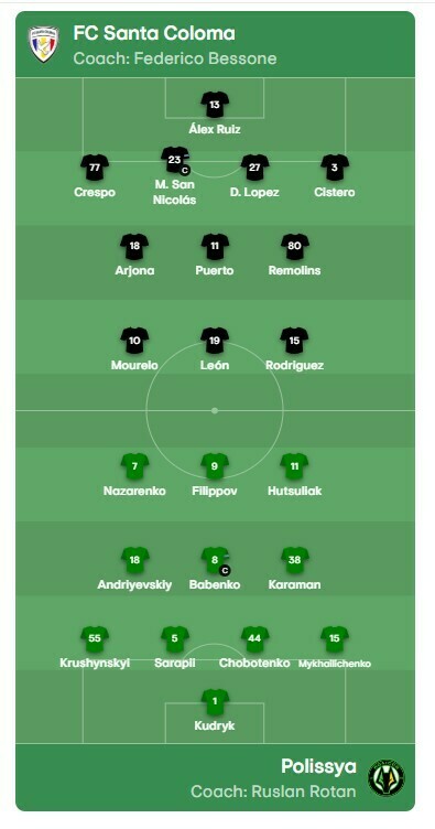Санта-Колома: Руїз, Цистеро, Моурело, Пуерто, Родрігес, Арйана, Леон, Сан Ніколас, Лопес, Креспо, Ремолінс