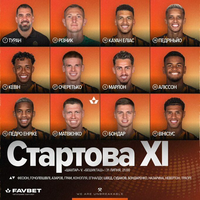 31 липня відбудеться матч-відповідь другого раунду Ліги Європи 2025/26 між командами Шахтар Донецьк і Бешикташ Стамбул.