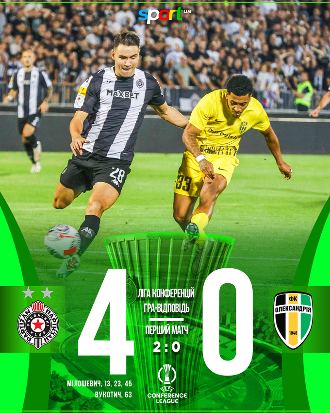 4:0 – європохід «Олександрії» завершено. Хто там попадеться «Партизану» в Q3, навіть дивитися не хочеться, просто побажаю їм чимшвидшого вильоту з ганьбою.