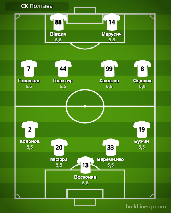 СК «Полтава»: Восконян – Кононов, Місюра, Веремієнко, Бужин – Галенков, Плахтир, Хахльов (Опанасенко, 73), Одарюк (Савенков, 85) – Вівдич (Стрельцов, 73), Марусич (Шаповалов, 54).