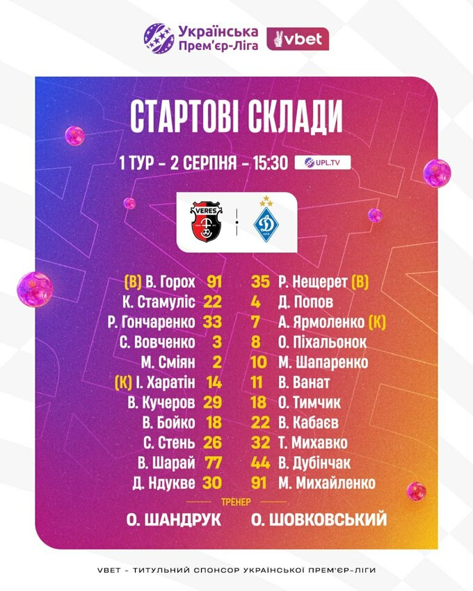 У суботу, 2 липня, відбудеться поєдинок 1-го туру Української Прем'єр-ліги, у якому змагатимуться рівненський «Верес» та «Динамо» Київ. Матч пройде у Рівному, на полі стадіону «Авангард», початок о 15.30.