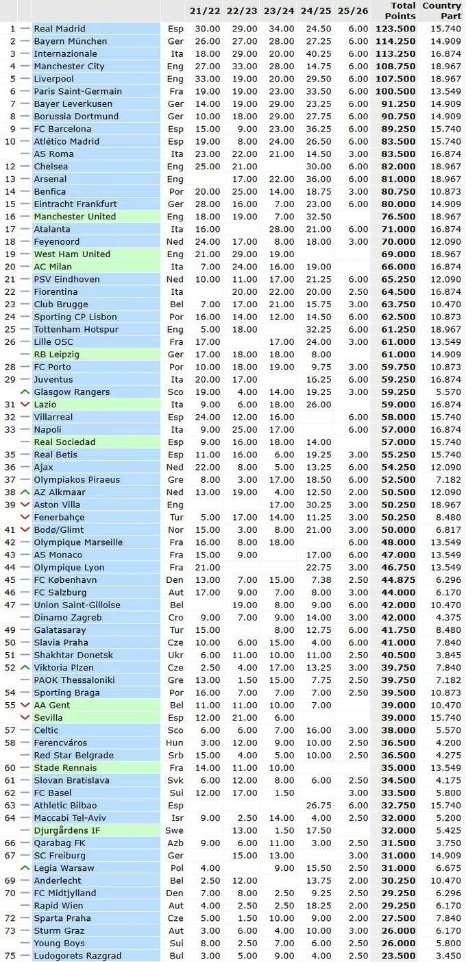 (впливає на розподіл єврокубкових квот у сезоні 2027/28)