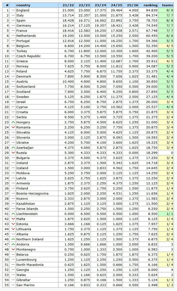 У 5-річному рейтингу Україна посідає 27-ме місце (19.225). Цього тижня вдалося трохи скоротити відставання від тих, хто йде вище у списку.