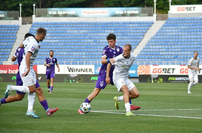 З перших хвилин поєдинку гравці обидвох колектив особливо не поспішали форсувати події, через що перший удар по воротам був завданий аж у першій третині тайму, коли Кузик пробив у сантиметрах від стійки. А далі у перебіг подій втрутилася повітряна тривога, через що команди півгодини провели в укритті.