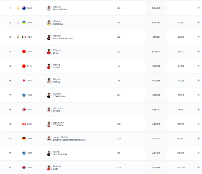 19-річний Олексій Середа показав 2-й результат (515.2 балла) у фіналі стрибків з 10-метрової вишки та отримав срібну нагороду.