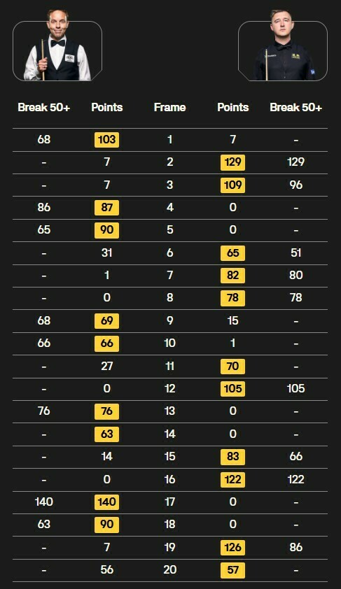 Серія у 86 очок дала Вілсону 19-й фрейм і перевагу 10:9. А в драматичному 20-му він здобув перемогу на чорній кулі (11:9).