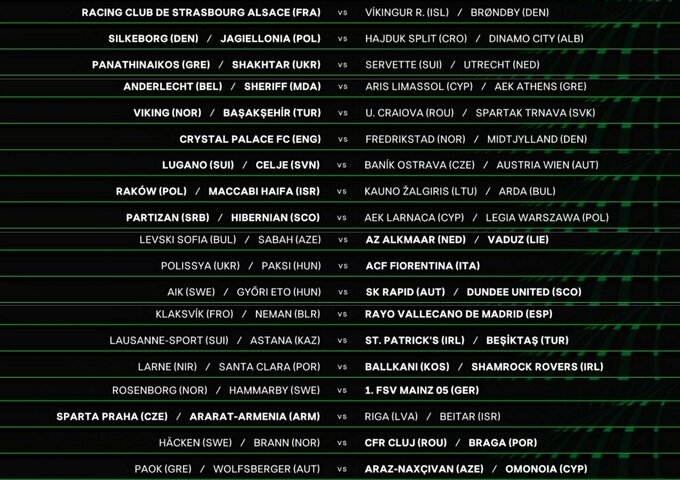 - Левськи Софія (Болгарія) / Сабах (Азербайджан) – АЗ Алкмаар (Нідерланди) / Вадуц (Ліхтенштейн)