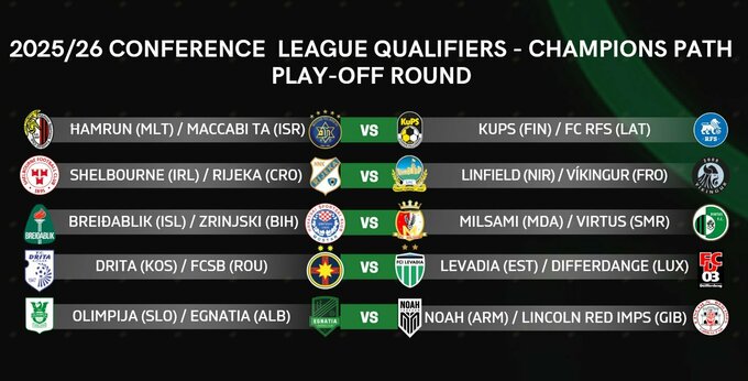 - Переможений: Зрінськи (Боснія і Герцеговина) / Брейдаблік (Ісландія) – Мілсамі (Молдова) / Віртус (Сан-Марино)