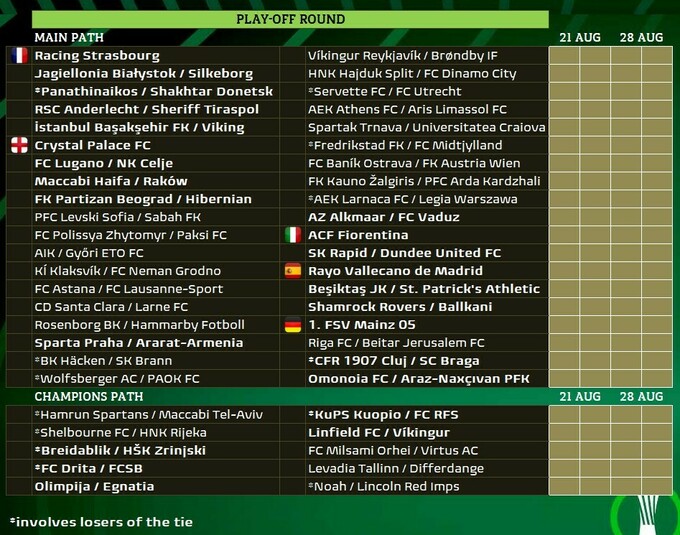 Поєдинки 4-го раунду кваліфікації Ліги конференцій відбудуться 21 та 28 серпня.