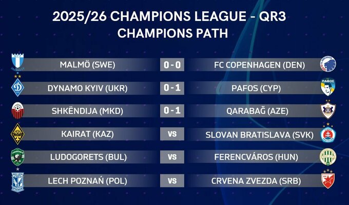 У кількох парах 5 серпня відбулися матчі кваліфікації Ліги чемпіонів 2025/26.