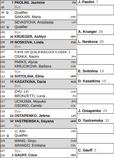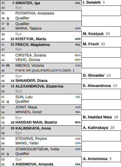 Світоліна отримала десятий номер посіву і почне виступи з другого кола. Її першою суперницею буде переможниця протистояння Аліша Паркс – Барбора Крейчикова.