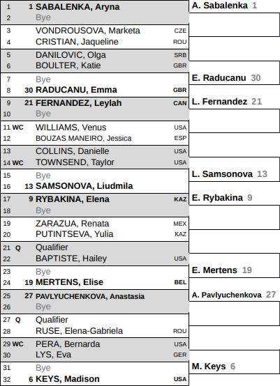 Матчі основної сітки змагань у Цинциннаті стартують 7 серпня. Першою сіяною і чинною чемпіонкою є Аріна Соболенко.