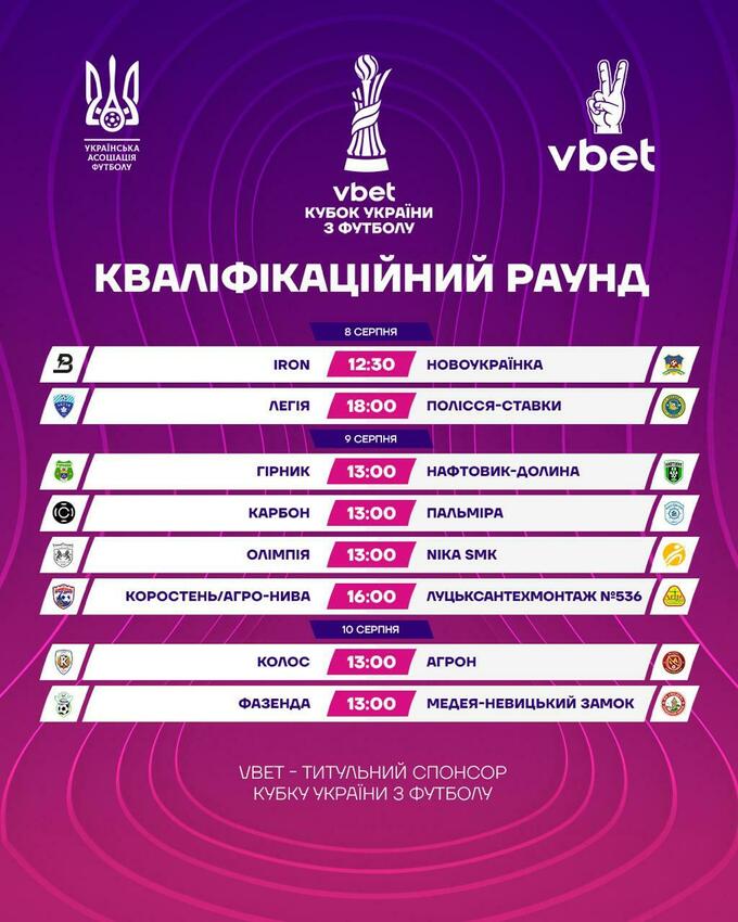У п’ятницю, 8 серпня, стартує перший кваліфікаційний раунд, і до 10 серпня буде зіграно 8 матчів.