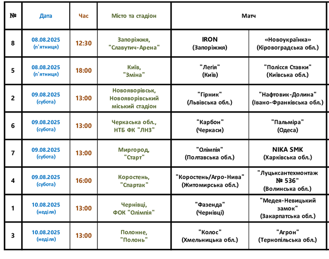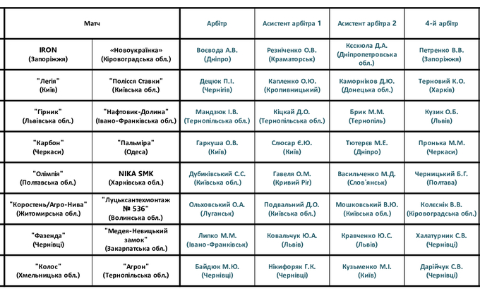 - 13:00. Олімпія (Савинці, Полтавська обл.) – NIKA SMK (Богодухів, Харківська обл.)