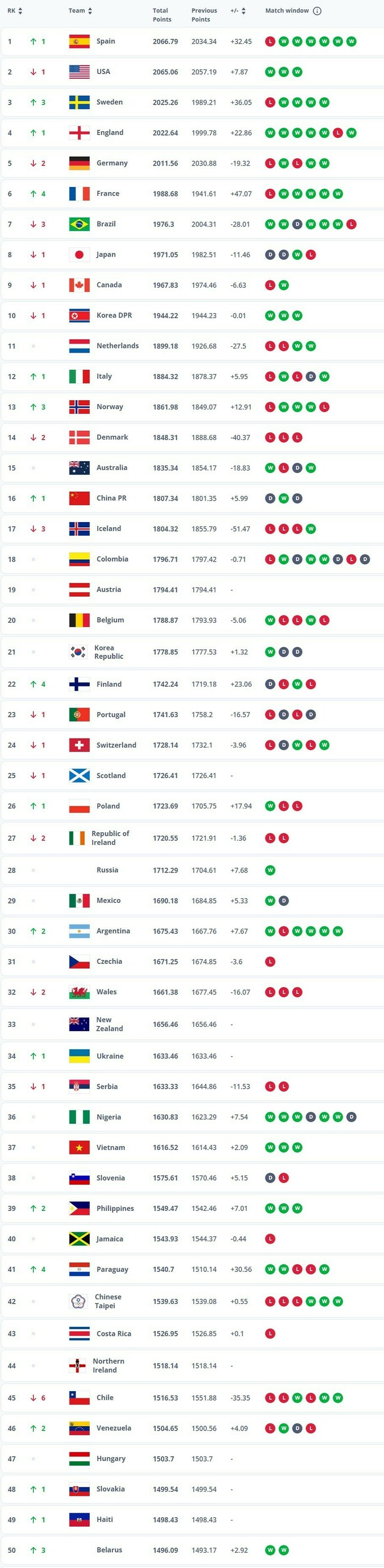 До першої трійки рейтингу ФІФА входять Іспанія, США та Швеція.