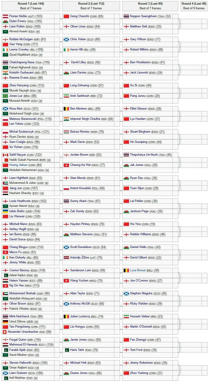 2025 Saudi Arabia Masters. Сітка ранніх раундів турніру