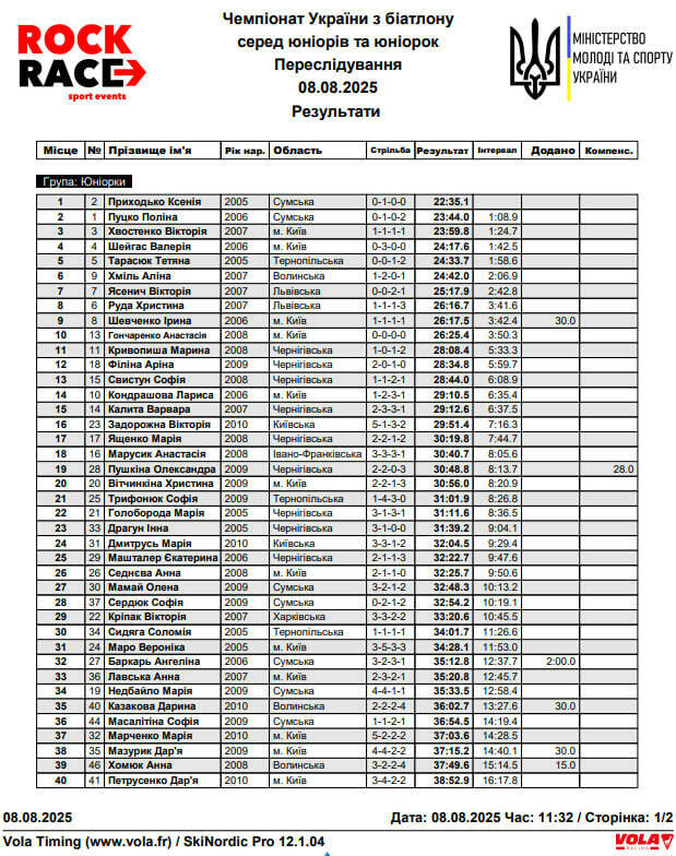 ЮЧУ-2025. Незмінна трійка. Приходько взяла реванш у Пуцко за спринт